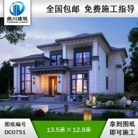 新中式二層別墅圖紙及外觀效果圖_農村自建別墅設計,鼎川建筑